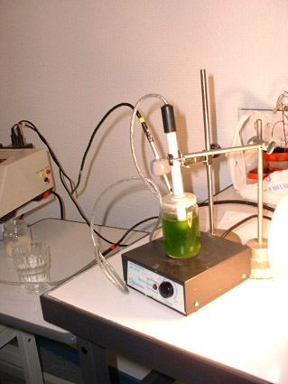 Le matériel biologique est une algue microscopique (chlorelle). On place une suspension de cette algue dans une enceinte agitée.