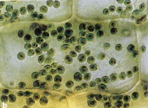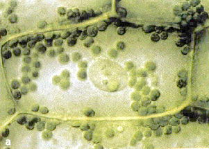Montez ces deux feuilles entre lame et lamelle et observer au microscope et faire le réglage avec l’objectif (X40)puis placez une goutte d’eau iodée sur le bord de la lamelle, attendre un instant puis observer de nouveaux que constatez-vous.