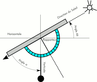 On fait la mesure perpendiculairement aux rayons du soleil.