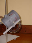 | Le capteur ( disque de laiton) est isolé du milieu extérieur pour ne pas perdre de la chaleur par conduction ou par convection donc placé dans un tuyau de PVC fermé à l’avant par le plexiglas, à l’arrière par et la rondelle de polystyrène. | ![]() |